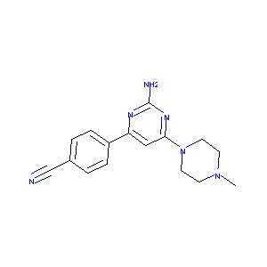 CN1CCN(CC1)C2=NC(=NC(=C2)C3=CC=C(C=C3)C#N)N