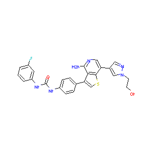 C1=CC(=CC(=C1)F)NC(=O)NC2=CC=C(C=C2)C3=CSC4=C3C(=NC=C4C<br />5=CN(N=C5)CCO)N