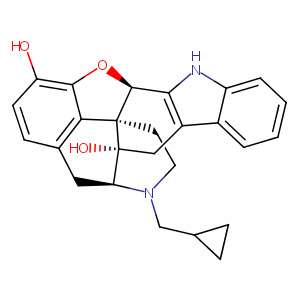 InChI=1S/C26H26N2O3/c29-19-8-7-15-11-20-26(30)12-17-16-3-1-2-4-18(16)27-22(17)24-25(26,21(15)23(19)31-24)9-10-28(20)13-14-5-6-14/h1-4,7-8,14,20,24,27,29-30H,5-6,9-13H2/t20-,24+,25+,26-/m1/s1