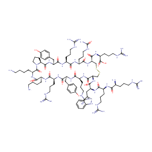 InChI=1S/C94H152N38O19S2/c95-35-5-3-18-59-76(138)125-65(19-4-6-36-96)86(148)132-44-14-26-72(132)85(147)129-68(46-52-29-33-55(134)34-30-52)81(143)123-62(22-10-40-114-91(104)105)75(137)121-64(24-12-43-117-94(110)151)79(141)130-71(84(146)126-66(87(149)150)25-13-42-116-93(108)109)50-153-152-49-70(83(145)124-63(23-11-41-115-92(106)107)78(140)127-67(45-51-27-31-54(133)32-28-51)80(142)122-61(74(136)120-59)21-9-39-113-90(102)103)131-82(144)69(47-53-48-118-58-17-2-1-15-56(53)58)128-77(139)60(20-8-38-112-89(100)101)119-73(135)57(97)16-7-37-111-88(98)99/h1-2,15,17,27-34,48,57,59-72,118,133-134H,3-14,16,18-26,35-47,49-50,95-97H2,(H,119,135)(H,120,136)(H,121,137)(H,122,142)(H,123,143)(H,124,145)(H,125,138)(H,126,146)(H,127,140)(H,128,139)(H,129,147)(H,130,141)(H,131,144)(H,149,150)(H4,98,99,111)(H4,100,101,112)(H4,102,103,113)(H4,104,105,114)(H4,106,107,115)(H4,108,109,116)(H3,110,117,151)/t57-,59-,60-,61-,62-,63-,64-,65+,66-,67-,68-,69-,70-,71-,72-/m0/s1
