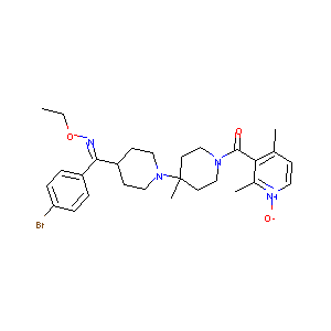 CCON=C(C1CCN(CC1)C2(CCN(CC2)C(=O)C3=C(C=C[N+](=C3C)[O-]<br />)C)C)C4=CC=C(C=C4)Br.C1=CC=C(C=C1)S(=O)(=O)O