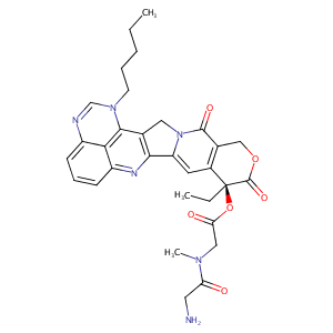 c1ccc2nc3c(c4c2c1ncn4CCCCC)Cn1c3cc2c(c1=O)COC(=O)[C@@]2<br />(CC)OC(=O)CN(C(=O)CN)C
