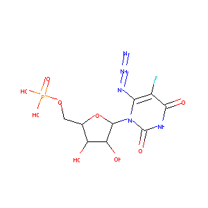 C(C1C(C(C(O1)N2C(=C(C(=O)NC2=O)F)N=[N+]=[N-])O)O)OP(=O)<br />(O)O