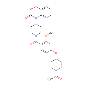 InChI=1S/C28H33N3O6/c1-19(32)29-15-11-22(12-16-29)37-23-7-8-24(26(17-23)35-2)27(33)30-13-9-21(10-14-30)31-25-6-4-3-5-20(25)18-36-28(31)34/h3-8,17,21-22H,9-16,18H2,1-2H3