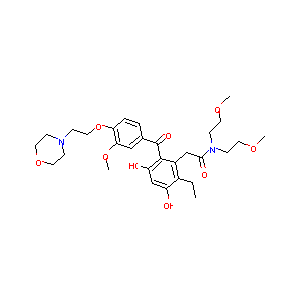 CCC1=C(C=C(C(=C1CC(=O)N(CCOC)CCOC)C(=O)C2=CC(=C(C=C2)OC<br />CN3CCOCC3)OC)O)O