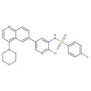 c1(ccc(cc1)F)S(=O)(=O)Nc1c(ncc(c1)c1cc2c(ccnc2cc1)N1CCO<br />CC1)Cl