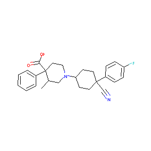 InChI=1S/C26H29FN2O2/c1-19-17-29(16-15-26(19,24(30)31)21-5-3-2-4-6-21)23-11-13-25(18-28,14-12-23)20-7-9-22(27)10-8-20/h2-10,19,23H,11-17H2,1H3,(H,30,31)/t19-,23-,25-,26-/m1/s1