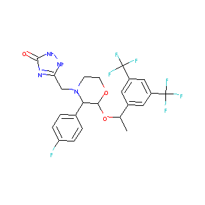 CC(C1=CC(=CC(=C1)C(F)(F)F)C(F)(F)F)OC2C(N(CCO2)CC3=NC(=<br />O)NN3)C4=CC=C(C=C4)F
