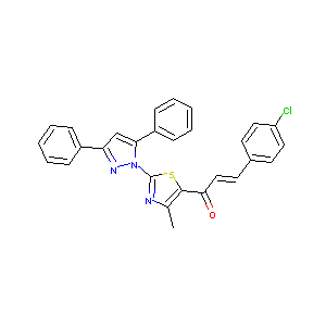 CC1=C(SC(=N1)N2C(=CC(=N2)C3=CC=CC=C3)C4=CC=CC=C4)C(=O)C<br />=CC5=CC=C(C=C5)Cl