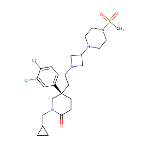 S(=O)(=O)(N1CCN(C2CN(C2)CC[C@]2(CN(C(=O)CC2)CC2CC2)c2cc<br />(c(cc2)Cl)Cl)CC1)C