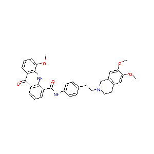 COC1=CC=CC2=C1NC3=C(C2=O)C=CC=C3C(=O)NC4=CC=C(C=C4)CCN5<br />CCC6=CC(=C(C=C6C5)OC)OC
