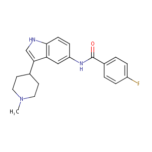 InChI=1S/C21H22FN3O/c1-25-10-8-14(9-11-25)19-13-23-20-7-6-17(12-18(19)20)24-21(26)15-2-4-16(22)5-3-15/h2-7,12-14,23H,8-11H2,1H3,(H,24,26)