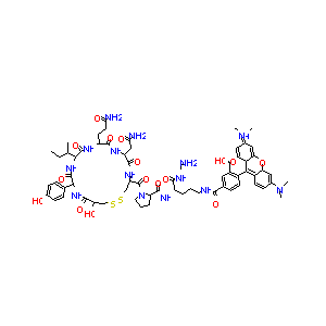 1S/C65H84N14O16S2/c1-7-33(2)54-62(90)72-44(22-23-51(67)82)58(86)73-45(29-52(68)83)59(87)74-46(30-96-97-31-48(81)61(89)76-55(63(91)75-54)34-12-17-38(80)18-13-34)64(92)79-25-9-11-47(79)60(88)71-43(57(85)70-32-66)10-8-24-69-56(84)35-14-19-39(42(26-35)65(93)94)53-40-20-15-36(77(3)4)27-49(40)95-50-28-37(78(5)6)16-21-41(50)53/h12-21,26-28,33,40,43-48,50,54-55,81H,7-11,22-25,29-32,66H2,1-6H3,(H13-,67,68,69,70,71,72,73,74,75,76,80,82,83,84,85,86,87,88,89,90,91,93,94)/p+1/t33?,40?,43-,44+,45+,46+,47+,48?,50?,54+,55-/m0/s1