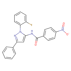 InChI=1S/C22H15FN4O3/c23-18-8-4-5-9-20(18)26-21(14-19(25-26)15-6-2-1-3-7-15)24-22(28)16-10-12-17(13-11-16)27(29)30/h1-14H,(H,24,28)