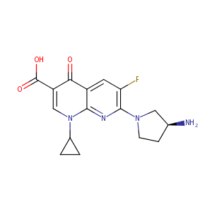 1S/C16H17FN4O3/c17-12-5-10-13(22)11(16(23)24)7-21(9-1-2-9)14(10)19-15(12)20-4-3-8(18)6-20/h5,7-9H,1-4,6,18H2,(H,23,24)/t8-/m0/s1