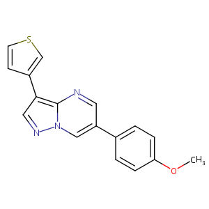 InChI=1S/C17H13N3OS/c1-21-15-4-2-12(3-5-15)14-8-18-17-16(9-19-20(17)10-14)13-6-7-22-11-13/h2-11H,1H3
