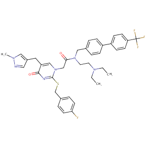 n1(c(nc(=O)c(c1)Cc1cnn(c1)C)SCc1ccc(cc1)F)CC(=O)N(Cc1cc<br />c(cc1)c1ccc(cc1)C(F)(F)F)CCN(CC)CC