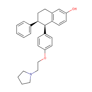 InChI=1S/C28H31NO2/c30-24-11-15-27-23(20-24)10-14-26(21-6-2-1-3-7-21)28(27)22-8-12-25(13-9-22)31-19-18-29-16-4-5-17-29/h1-3,6-9,11-13,15,20,26,28,30H,4-5,10,14,16-19H2/t26-,28+/m1/s1