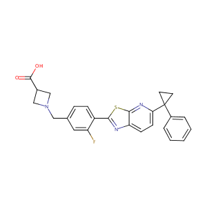 N1(CC(C1)C(=O)O)Cc1cc(c(cc1)c1sc2c(ccc(n2)C2(CC2)c2cccc<br />c2)n1)F