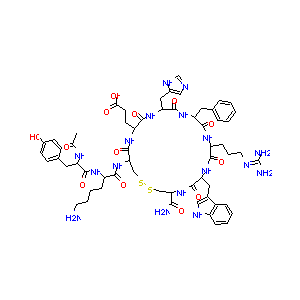 CC(=O)NC(CC1=CC=C(C=C1)O)C(=O)NC(CCCCN)C(=O)NC2CSSCC(NC<br />(=O)C(NC(=O)C(NC(=O)C(NC(=O)C(NC(=O)C(NC2=O)CCC(=O)O)CC<br />3=CN=CN3)CC4=CC=CC=C4)CCCN=C(N)N)CC5=CNC6=CC=CC=C65)C(=<br />O)N