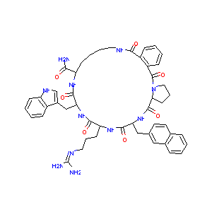 C1CCNC(=O)C2=CC=CC=C2C(=O)N3CCCC3C(=O)NC(C(=O)NC(C(=O)N<br />C(C(=O)NC(C1)C(=O)N)CC4=CNC5=CC=CC=C54)CCCN=C(N)N)CC6=C<br />C7=CC=CC=C7C=C6