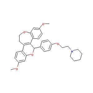 COC1=CC2=C(C=C1)C3=C(C(O2)C4=CC=C(C=C4)OCCN5CCCCC5)C6=C<br />(C=C(C=C6)OC)OCC3