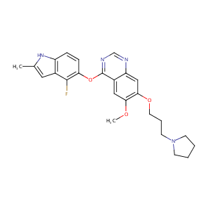 Recentin; AZD 2171; AZD2171; M6294; AZD-2171; ZD-2171; AZD2171, Recentin, Cediranib; Cediranib (USAN/INN); 4-[(4-fluoro-2-methyl-1H-indol-5-yl)oxy]-6-methoxy-7-(3-pyrrolidin-1-ylpropoxy)quinazoline; 4-[(4-fluoro-2-methyl-1H-indol-5-yl)oxy]-6-methoxy-7-[3-(pyrrolidin-1-yl)propoxy]quinazoline