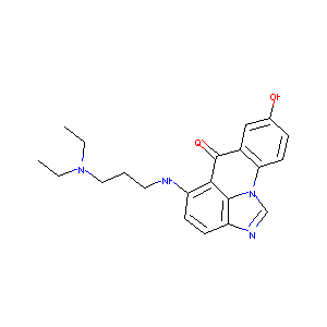 CCN(CC)CCCNC1=C2C3=C(C=C1)N=CN3C4=C(C2=O)C=C(C=C4)O.Cl