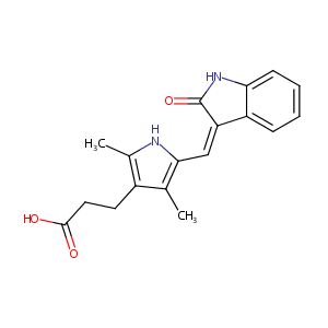 InChI=1S/C18H18N2O3/c1-10-12(7-8-17(21)22)11(2)19-16(10)9-14-13-5-3-4-6-15(13)20-18(14)23/h3-6,9,19H,7-8H2,1-2H3,(H,20,23)(H,21,22)/b14-9-