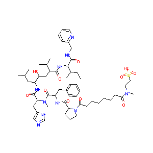 CCC(C)C(C(=O)NCC1=CC=CC=N1)NC(=O)C(CC(C(CC(C)C)NC(=O)C(<br />CC2=CN=CN2)N(C)C(=O)C(CC3=CC=CC=C3)NC(=O)C4CCCN4C(=O)CC<br />CCCCC(=O)N(C)CCS(=O)(=O)[O-])O)C(C)C.[Na+]