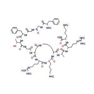 CC(C(C(=O)NCC(=O)NC1CC(=O)NCCCCC(NC(=O)C(NC(=O)C(NC1=O)<br />CCCN=C(N)N)CCCCN)C(=O)NC(C)C(=O)NC(CCCN=C(N)N)C(=O)NC(C<br />CCCN)C(=O)N)NC(=O)C(CC2=CC=CC=C2)NC(=O)CNC(=O)CNC(=O)C(<br />CC3=CC=CC=C3)N)O