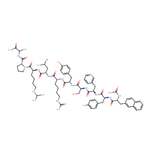 InChI=1S/C74H100ClN15O14/c1-43(2)35-57(66(96)84-56(19-10-11-32-79-44(3)4)73(103)90-34-14-20-63(90)72(102)81-45(5)64(76)94)85-65(95)55(18-9-12-33-80-74(77)104)83-68(98)59(38-48-24-29-54(93)30-25-48)88-71(101)62(42-91)89-70(100)61(40-50-15-13-31-78-41-50)87-69(99)60(37-47-22-27-53(75)28-23-47)86-67(97)58(82-46(6)92)39-49-21-26-51-16-7-8-17-52(51)36-49/h7-8,13,15-17,21-31,36,41,43-45,55-63,79,91,93H,9-12,14,18-20,32-35,37-40,42H2,1-6H3,(H2,76,94)(H,81,102)(H,82,92)(H,83,98)(H,84,96)(H,85,95)(H,86,97)(H,87,99)(H,88,101)(H,89,100)(H3,77,80,104)/t45?,55-,56+,57+,58-,59+,60+,61-,62+,63-/m1/s1