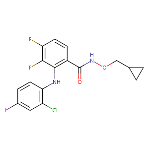 InChI=1S/C17H14ClF2IN2O2/c18-12-7-10(21)3-6-14(12)22-16-11(4-5-13(19)15(16)20)17(24)23-25-8-9-1-2-9/h3-7,9,22H,1-2,8H2,(H,23,24)
