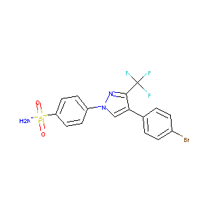 C1=CC(=CC=C1C2=CN(N=C2C(F)(F)F)C3=CC=C(C=C3)S(=O)(=O)N)<br />Br
