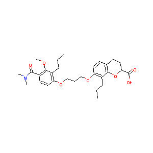 CCCC1=C(C=CC2=C1OC(CC2)C(=O)O)OCCCOC3=C(C(=C(C=C3)C(=O)<br />N(C)C)OC)CCC