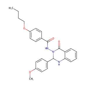 InChI=1S/C26H27N3O4/c1-3-4-17-33-21-15-11-19(12-16-21)25(30)28-29-24(18-9-13-20(32-2)14-10-18)27-23-8-6-5-7-22(23)26(29)31/h5-16,24,27H,3-4,17H2,1-2H3,(H,28,30)