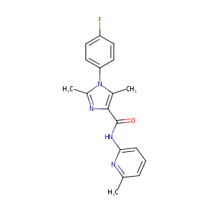 InChI=1S/C18H17FN4O/c1-11-5-4-6-16(20-11)22-18(24)17-12(2)23(13(3)21-17)15-9-7-14(19)8-10-15/h4-10H,1-3H3,(H,20,22,24)