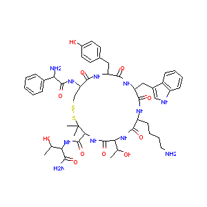 CC(C1C(=O)NC(C(SSCC(C(=O)NC(C(=O)NC(C(=O)NC(C(=O)N1)CCC<br />CN)CC2=CNC3=CC=CC=C32)CC4=CC=C(C=C4)O)NC(=O)C(C5=CC=CC=<br />C5)N)(C)C)C(=O)NC(C(C)O)C(=O)N)O