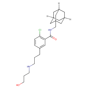 InChI=1S/C24H35ClN2O2/c25-22-5-4-17(3-1-6-26-7-2-8-28)12-21(22)23(29)27-16-24-13-18-9-19(14-24)11-20(10-18)15-24/h4-5,12,18-20,26,28H,1-3,6-11,13-16H2,(H,27,29)