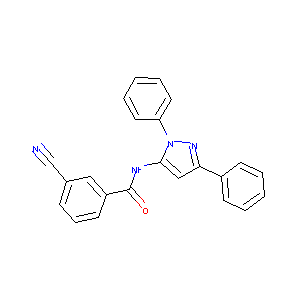 C1=CC=C(C=C1)C2=NN(C(=C2)NC(=O)C3=CC=CC(=C3)C#N)C4=CC=C<br />C=C4