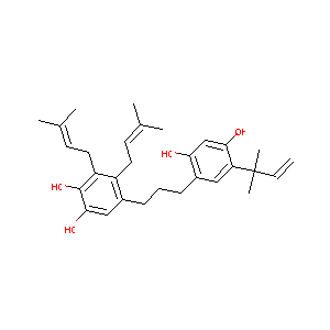 CC(=CCC1=C(C(=C(C=C1CCCC2=CC(=C(C=C2O)O)C(C)(C)C=C)O)O)<br />CC=C(C)C)C