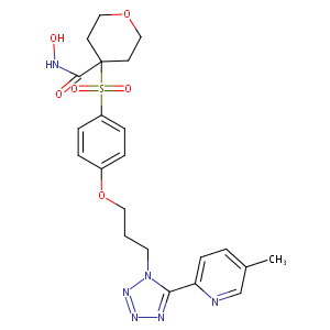 C1COCCC1(S(=O)(=O)c1ccc(cc1)OCCCn1c(nnn1)c1ccc(cn1)C)C(<br />=O)NO