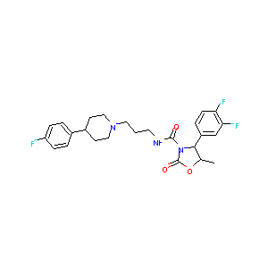 CC1C(N(C(=O)O1)C(=O)NCCCN2CCC(CC2)C3=CC=C(C=C3)F)C4=CC(<br />=C(C=C4)F)F