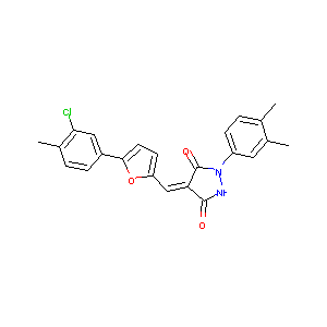 CC1=C(C=C(C=C1)N2C(=O)C(=CC3=CC=C(O3)C4=CC(=C(C=C4)C)Cl<br />)C(=O)N2)C