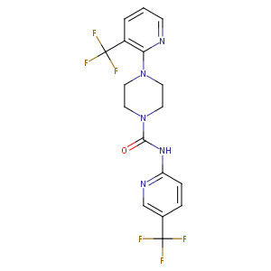 InChI=1S/C17H15F6N5O/c18-16(19,20)11-3-4-13(25-10-11)26-15(29)28-8-6-27(7-9-28)14-12(17(21,22)23)2-1-5-24-14/h1-5,10H,6-9H2,(H,25,26,29)