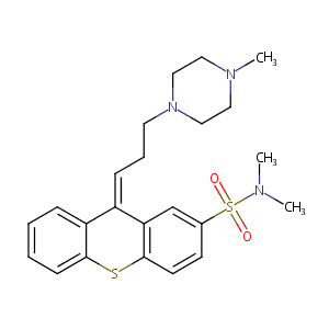 Navan; Navane; Navaron; Orbinamon; Thiothixine; Tiotixene; Tiotixeno; Tiotixenum; Thiothixene hydrochloride; P 4657B; CP 12252-1; Cis-Thiothixene; Navane (TN); P-4657 B; P-4657A; P-4657B; Thiothixene (USP); Thiothixene (Z); Thiothixene Hydrochloride (base); Thiothixene [USAN:BAN]; Tiotixene (JAN); Tiotixeno [INN-Spanish]; Tiotixenum [INN-Latin]; Trans-Thiothixene; P-4657-B; CP-12,252-1; CP-12,252-1 base; {2-(Dimethylsulfamoyl)-[9-(4-methyl-1-piperazinyl)propylidene]thiox} anthene; N,N-Dimethyl-9-[3-(4-methyl-1-piperazinyl)propylidene]thiaxanthene-2-sulfonamide; N,N-Dimethyl-9-[3-(4-methyl-1-piperazinyl)propylidene]thioxanthene-2-sulfonamide; N,N-dimethyl-9-[3-(4-methylpiperazin-1-yl)propylidene]thioxanthene-2-sulfonamide; N,N-Dimethyl-9-(3-(4-methyl-1-piperazinyl)propylidene)thioxanthene-2-sulfonamide; Trans-N,N-Dimethyl-9-(3-(4-methyl-piperazinyl)propylidene)thioxanthene-2-sulfonamide; Cis-N,N-Dimethyl-9-(3-(4-methyl-1-piperazinyl)propylidene)thioxanthene-2-sulfonamide; N,N-Dimethyl-9-(3-(4-methylpiperazin-1-yl)propylidene)-9H-thioxanthene-2-sulphonamide; (9E)-N,N-dimethyl-9-[3-(4-methylpiperazin-1-yl)propylidene]-9H-thioxanthene-2-sulfonamide; (9E)-N,N-dimethyl-9-[3-(4-methylpiperazin-1-yl)propylidene]thioxanthene-2-sulfonamide; (9Z)-N,N-dimethyl-9-[3-(4-methylpiperazin-1-yl)propylidene]thioxanthene-2-sulfonamide; (E)-Thiothixene; 2-(Dimethylsulfamoyl)-(9-(4-methyl-1-piperazinyl)propylidene)thioxanthene