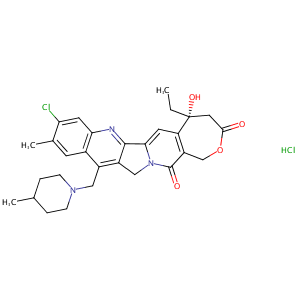 CCC1(CC(=O)OCC2=C1C=C3C4=NC5=CC(=C(C=C5C(=C4CN3C2=O)CN6<br />CCC(CC6)C)C)Cl)O.Cl
