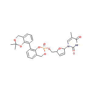 CC1=CN(C(=O)NC1=O)C2C=CC(O2)COP3(=O)OCC4=CC=CC(=C4O3)C5<br />=C6C(=CC=C5)COC(O6)(C)C