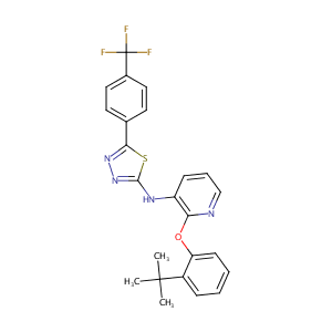 InChI=1S/C24H21F3N4OS/c1-23(2,3)17-7-4-5-9-19(17)32-20-18(8-6-14-28-20)29-22-31-30-21(33-22)15-10-12-16(13-11-15)24(25,26)27/h4-14H,1-3H3,(H,29,31)