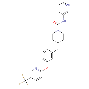 InChI=1S/C24H23F3N4O2/c25-24(26,27)19-6-7-22(29-15-19)33-21-5-1-3-18(14-21)13-17-8-11-31(12-9-17)23(32)30-20-4-2-10-28-16-20/h1-7,10,14-17H,8-9,11-13H2,(H,30,32)